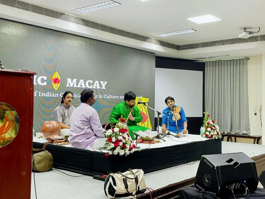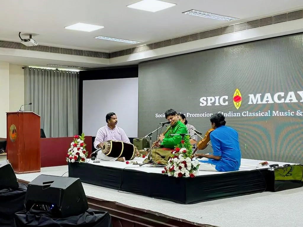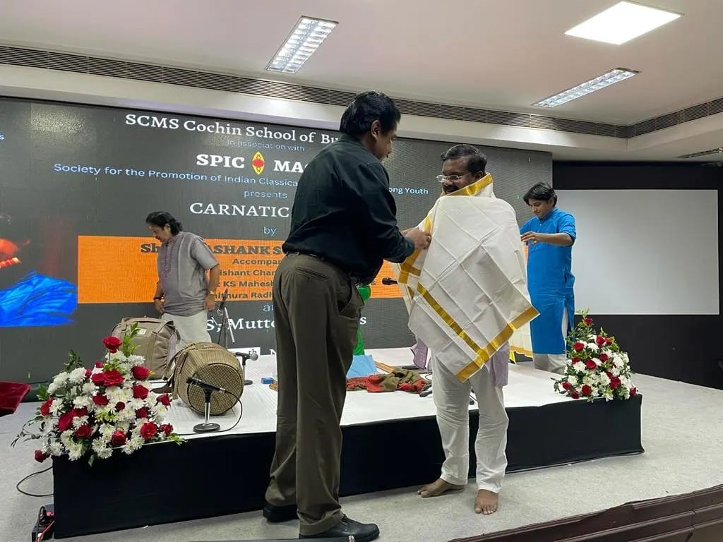 On November 9, 2024, SCMS Cochin School of Business, in association with SPICMACAY, hosted a captivating Carnatic flute concert in the Main Seminar Hall. The performance featured Grammy-nominated flautist Shri Shashank Subramanyam, a distinguished artist and recipient of the French Knighthood Chevalier de l’Ordre des Arts et des Lettres. He was accompanied by Dr. Nishant Chandran on the violin, Shri Palghat K.S. Maheshkumar on the mridangam, and Shri Tripunithura Radhakrishnan on the ghatam. The concert offered students a deeply soulful musical experience while providing a rich introduction to the beauty and depth of India’s classical music traditions.