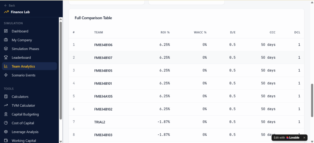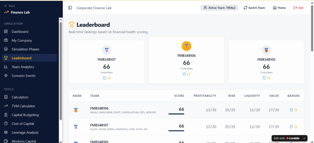 The Financial Management (Batch 34 – Term III) course integrates a faculty-designed Corporate Financial Lab to deliver a rich, experiential learning experience. This simulation places students in the role of financial decision-makers, enabling them to navigate the complete corporate life cycle while applying core financial management concepts in a connected and practical context.