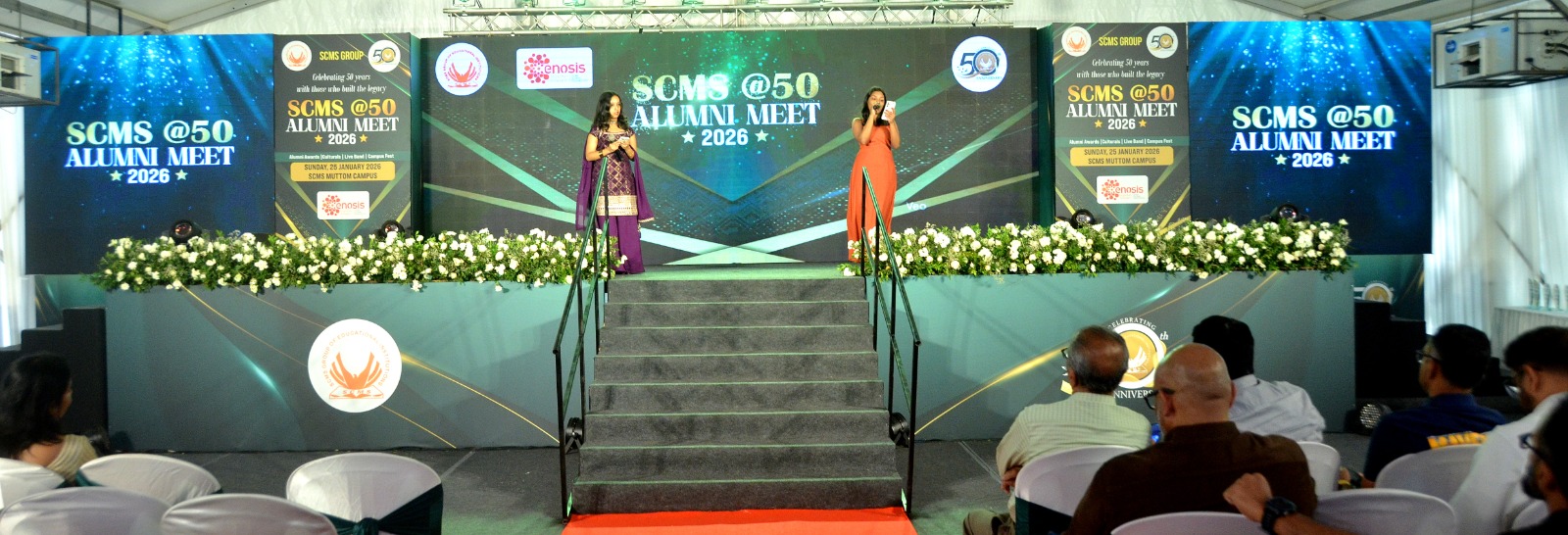 The SCMS Campus came alive with pride, nostalgia, and celebration as alumni gathered on January 25, 2026, to mark the Golden Jubilee of SCMS Alumni. The milestone event brought together distinguished alumni, faculty, students, and special guests for an evening filled with memories and meaningful moments.