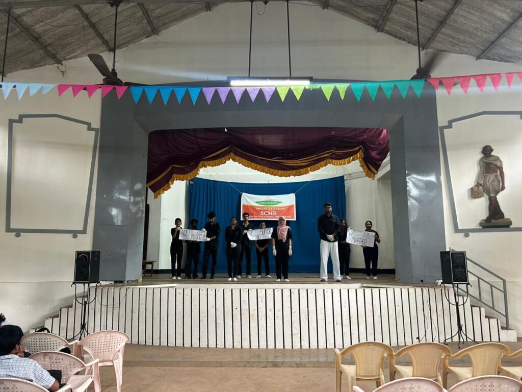 Parivarthana, the social outreach program of SCMS Cochin School of Business, Aluva, is an annual month-long initiative designed to sensitize students to socially relevant issues. This year, the program focused on the theme “Say No to Drugs,” aiming to raise awareness among school children about the dangers of drug abuse.