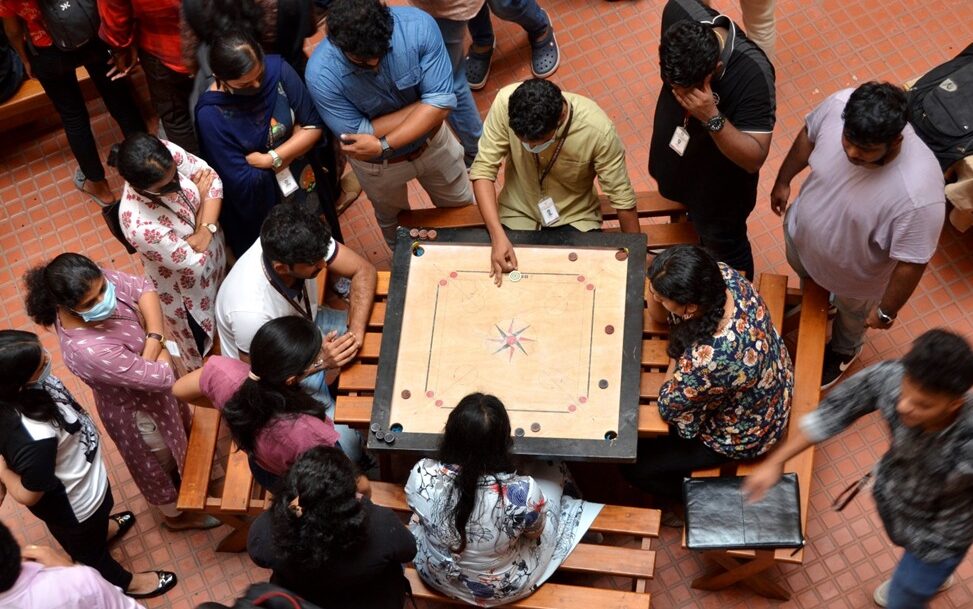 These provide the students with opportunities for recreation after the classes, for which specific places are available for playing chess, carroms, table tennis, etc. Two Atria covering about 300 square meters are available inside the campus for playing indoor games. The institution gives due concern to the health and wellness of the students, too, by arranging a gymnasium and yoga rooms. The students and faculty members can utilize the equipment and facilities in the gymnasium to improve their physical strength. Trained instructors who lead, instruct, and motivate students and faculty are present in yoga and gym centers. Thus, the Institution also gives stress to physical development, for which it houses various facilities on the campus.